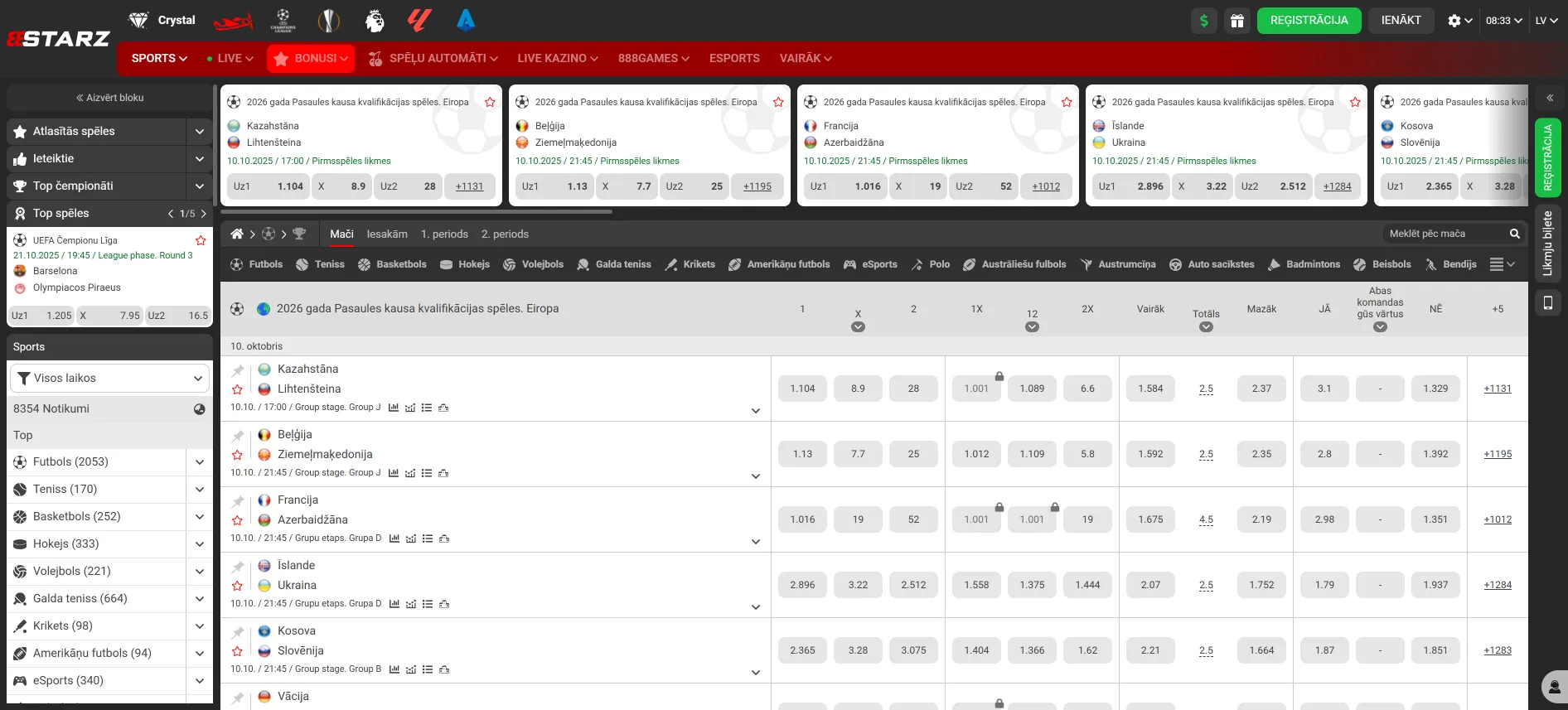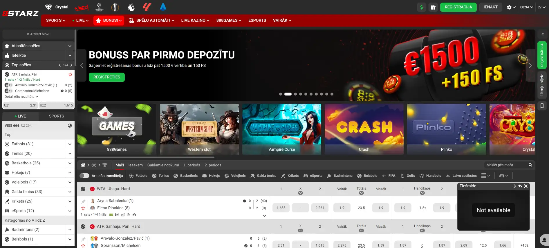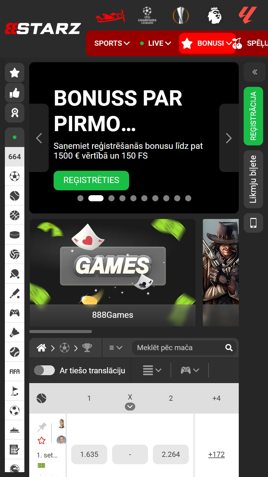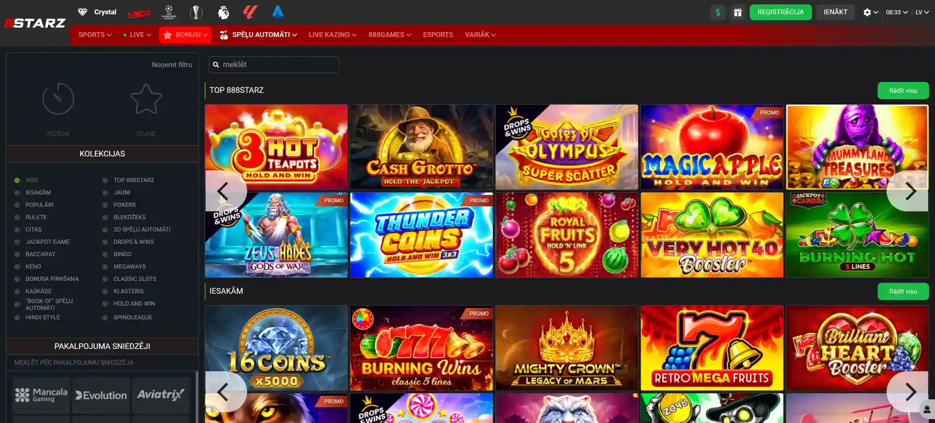 888Starz ir daudzpusīga azartspēļu vietne, kas apvieno sporta likmes, kazino un virtuālos turnīrus vienā modernā platformā. Tā piesaista vairāk nekā 400 000 lietotāju visā pasaulē ar plašu tirgu klāstu - no futbola un hokeja līdz e-sportam un derībām uz nišas sportiem. Piedāvājumā ir arī vairāk nekā 4000 spēļu automātu, klasiskie galda spēļu veidi un džekpota spēles. Vietne nodrošina ātru maksājumu apstrādi, 24/7 klientu atbalstu un ērtu mobilo lietotni. 888Starz kazino izceļas ar lietotājam draudzīgu vidi, bagātīgu saturu un drošību, kas padara to par stabilu izvēli gan sporta faniem, gan kazino spēlētājiem Latvijā.